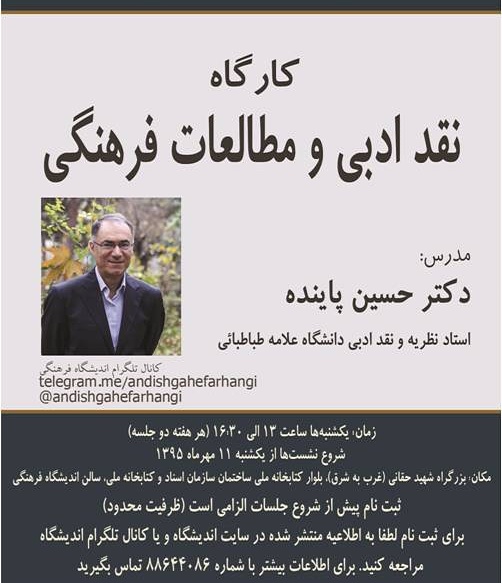 هدف از برگزاری کارگاه «نقد ادبی و مطالعات فرهنگی»، آشنایی با جدیدترین تحولات نقد ادبی است. در این دورهی آموزشی، علاوه برتوضیح دربارهی مفاهیم اساسیِ نظری، عمدهترین و پُرکاربردترین اصطلاحات رایج در مطالعات فرهنگی به تفصیل مورد بحث قرار میگیرند. در این دوره همچنین دلالتها و مضامین فرهنگیِ گزیدهای از آگهیهای تجاری تلویزیون ایران از منظر مطالعات فرهنگی تحلیل میشوند و همچنین مقایسهای بین ساختار این آگهیها و ساختار ژانر موسوم به «داستانک» صورت خواهد گرفت. به این منظور، عناصر ژانر «داستانک» معرفی میشوند و همچنین داستانکهایی از یک نویسندهی ایرانی و یک نویسندهی خارجی مورد بررسی قرار خواهند گرفت.