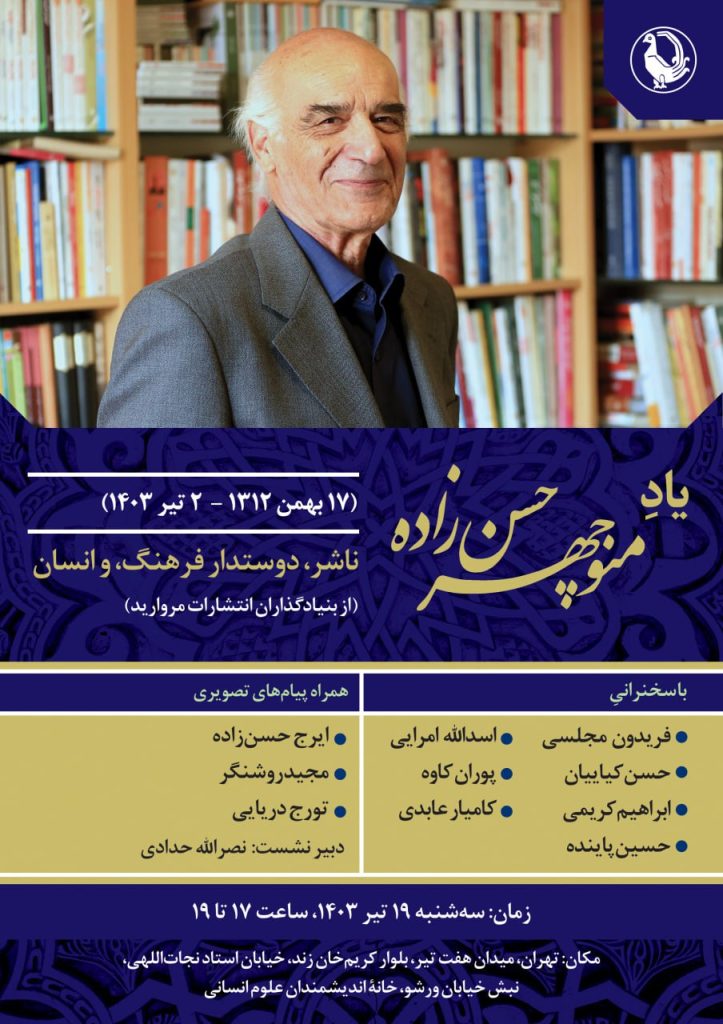 نوشتهشده در ۱۴۰۳-۰۴-۱۷۱۴۰۳-۱۰-۰۶ از مراسمی به یاد شادروان منوچهر حسنزاده همرسانی این مطلب:مطالب مرتبط:کتاب «روانکاوی فرهنگ عامّه» اثر برگزیدهی…مراسم گرامیداشت پنجاهوهفتمین سال فعالیت انتشارات مرواریدسپاسگزاری از دوستان