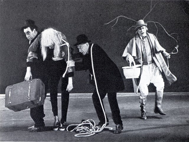 بکت در حال تماشای نمایشنامهی «در انتظار گودو»